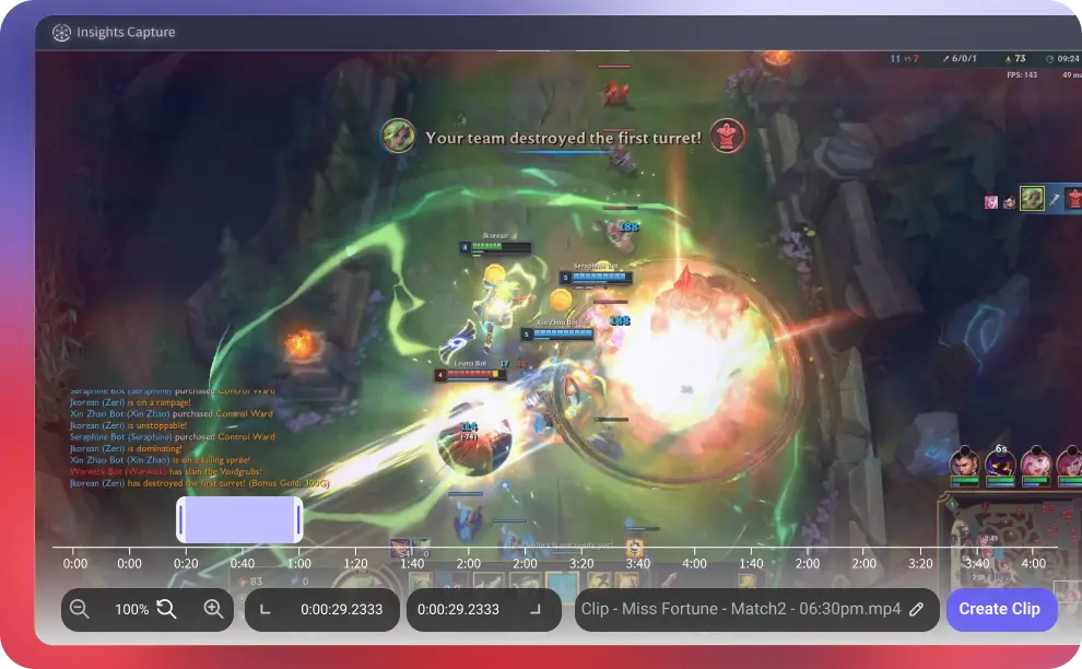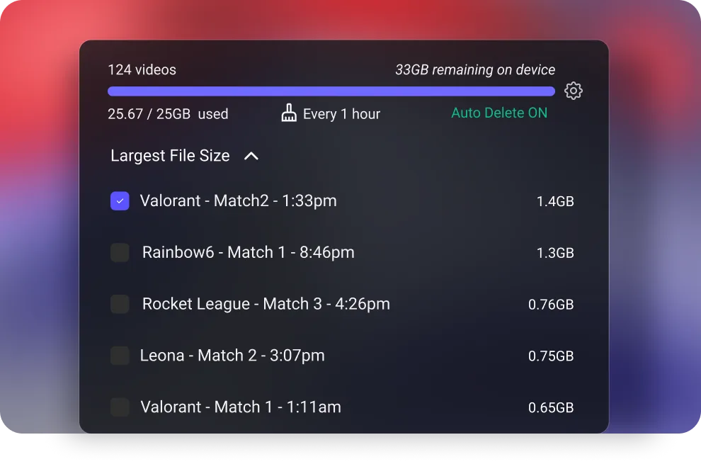Automatically capture your best moments or entire matches while playing your favorite game.